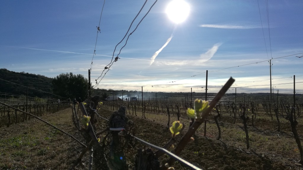 Ce mardi 21 mars marque la fin de la taille au domaine. Un repas est, chaque année, organisé par l’équipe de la vigne pour clôturer cette période intense : charcuterie, vin blanc, vin rouge et côtes de bœuf au rendez-vous à 9h du matin sous un ciel radieux !