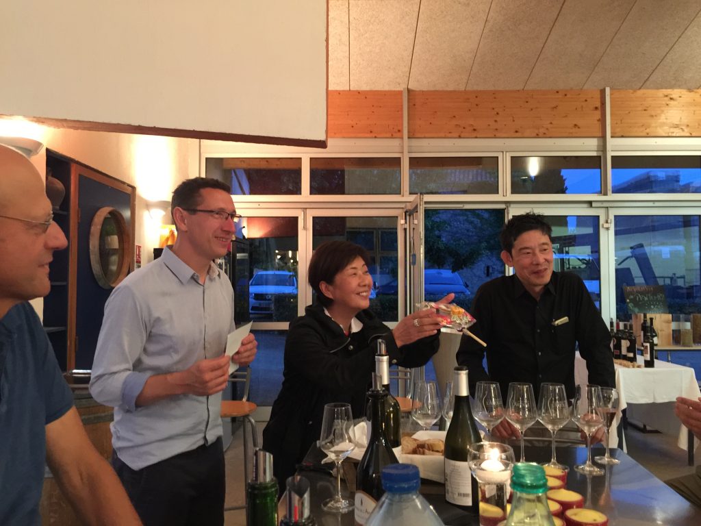 La dégustation des vins rouges s’est effectuée dans notre chai à barriques, suivi d’un apéritif dînatoire. Étaient présents Mr Ito, Mr Horié, Mr Kojima, Mme Udagawa et Mr Asakawa, pour cette édition 2017.