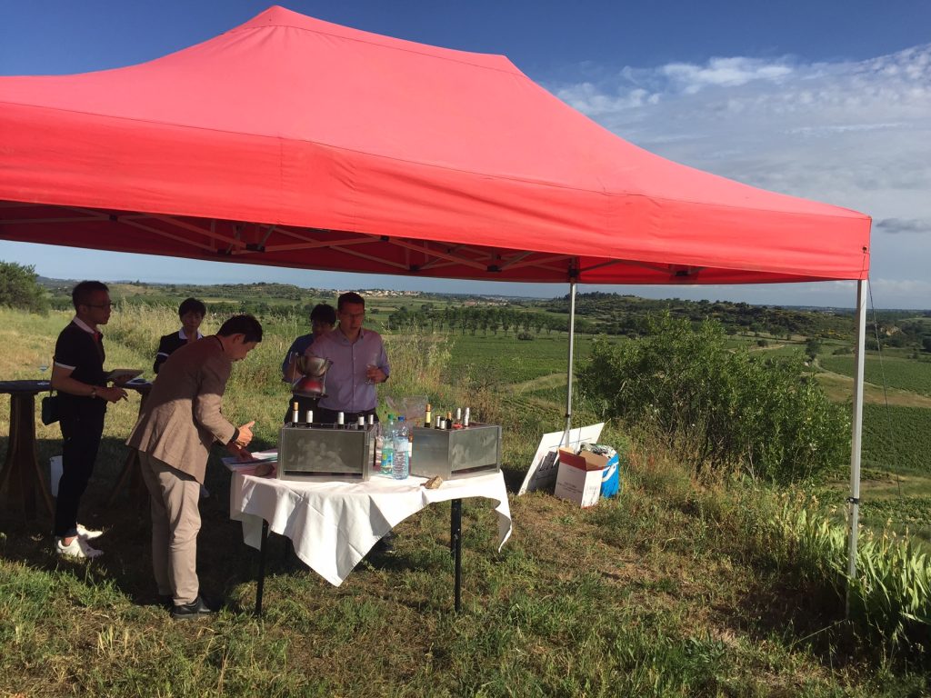 Nous les avons accompagné au-dessus du Domaine, à Puech Jany plus exactement, avec une dégustation de nos vins blancs et de nos rosés. Le tout accompagné, d’un plateau d’huîtres de Bouzigues.