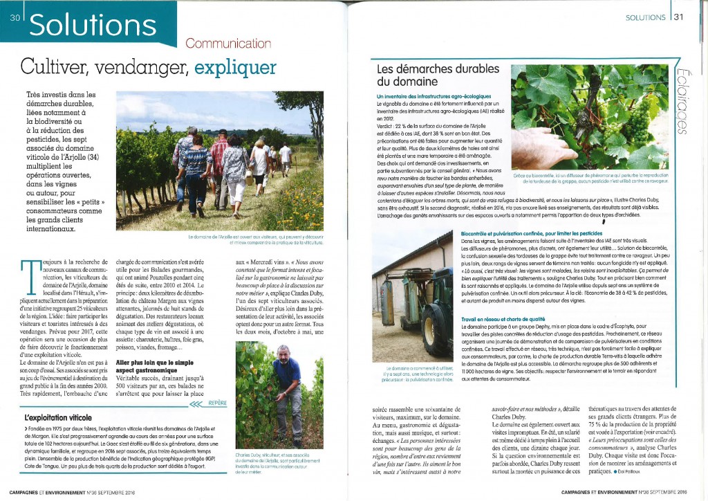 La communication du Domaine de l’Arjolle est mise en avant au mois de septembre dans la magazine Campagnes et Environnement.